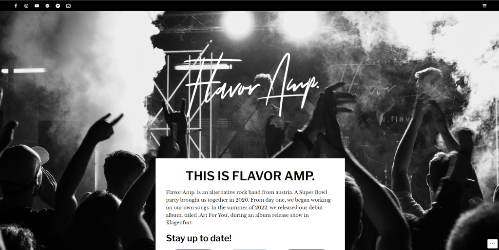 Dies ist die Homepage meiner eigenen Band namens “Flavor Amp.”, welche ich selbst erstellt habe und stets am aktuellsten Stand halte. Auf dieser finden Sie mehrere Informationen zu uns als Band.